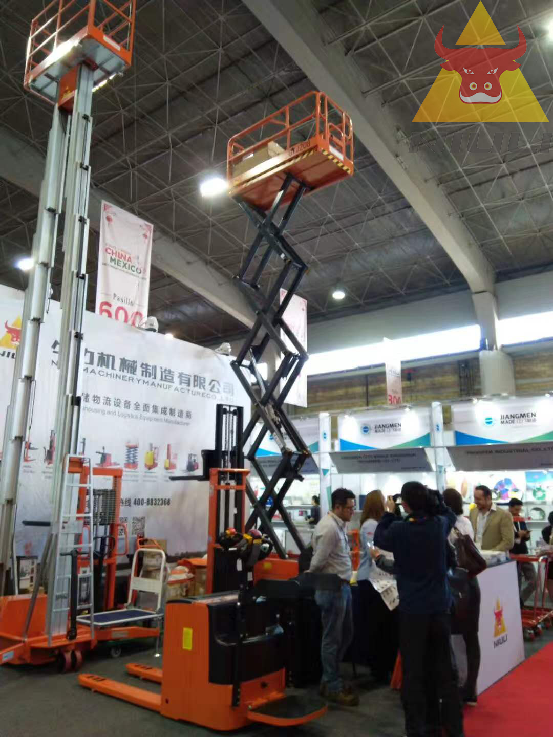 牛力:墨西哥中國投資交易會現(xiàn)場 華南物流裝備制造大型企業(yè)——牛力機械攜眾多產(chǎn)品參加本次展會,展出產(chǎn)品包括電動搬運車、電動堆高車、高空作業(yè)平臺等系列產(chǎn)品。