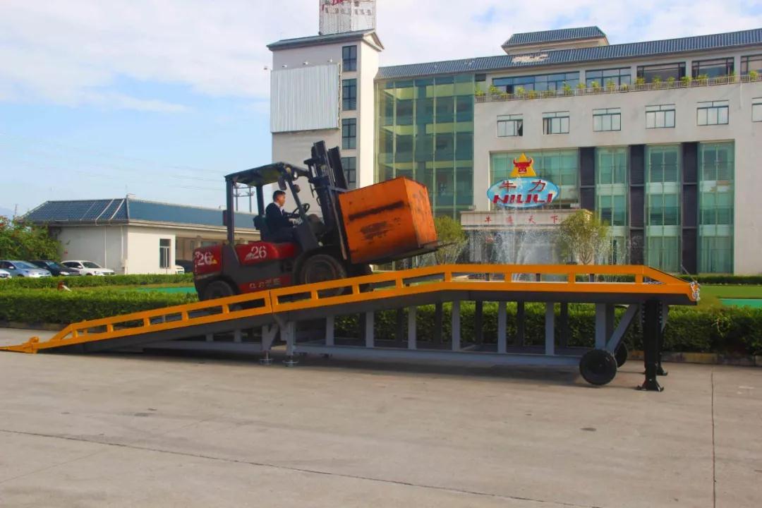 折疊式登車橋是與叉車配合使用的貨物裝卸輔助設(shè)備,在地面和車輛之間搭起橋梁,可根據(jù)汽車車廂的高低調(diào)節(jié)高度,叉車可以直接通過它駛?cè)胲噹麅?nèi)進(jìn)行貨物的裝卸作業(yè)。
