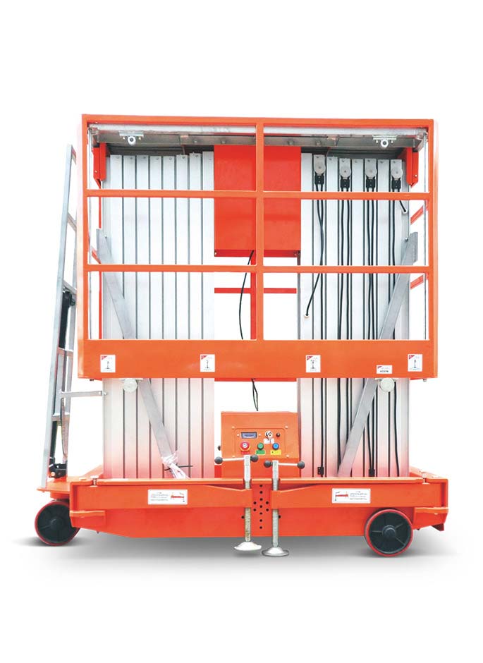 采用高強度航空鋁合金金桅桿設計,結(jié)構(gòu)緊湊,機身設計輕巧,機身底座設有活動輔助輪,提供轉(zhuǎn)彎的良好性能,適合各工商業(yè)用途,如建筑安裝,工廠維修、保養(yǎng),物業(yè)管理,展覽搭建,酒店設備維護、清潔,廣告安裝懸掛等。