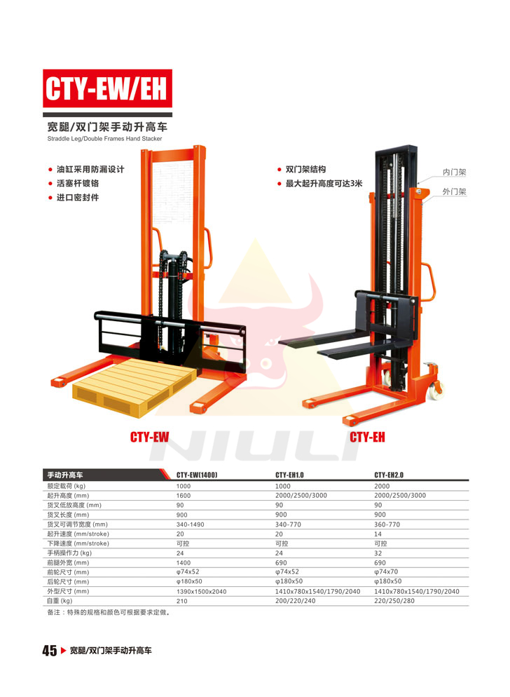 手動液壓升高車是具有升降平穩(wěn)、結構緊湊、運輸靈活、操作簡單、等特點。適用于工廠、車間、倉庫、車站、碼頭等處的貨物搬運和堆垛。寬腿設計可適用雙面托盤或某些特殊貨物的要求。