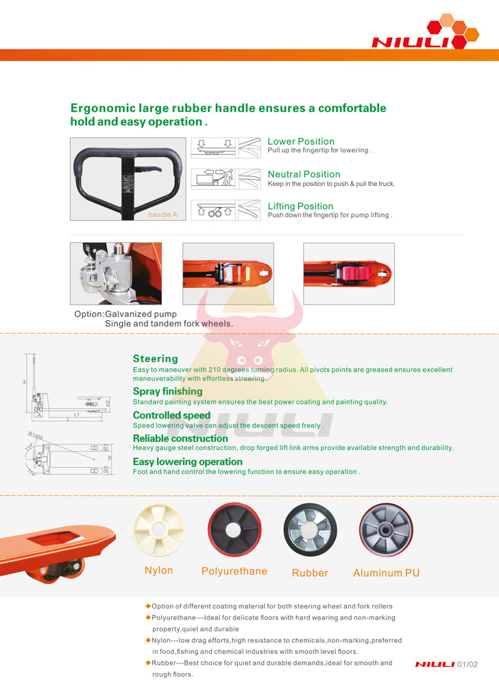 The Hand Parllet Tuck is the ideal " storage aid" and " handling partner " for all manual transport tasks over short distances,exce- llently suitable for use on lorries ,in small warehouses and markets ect .